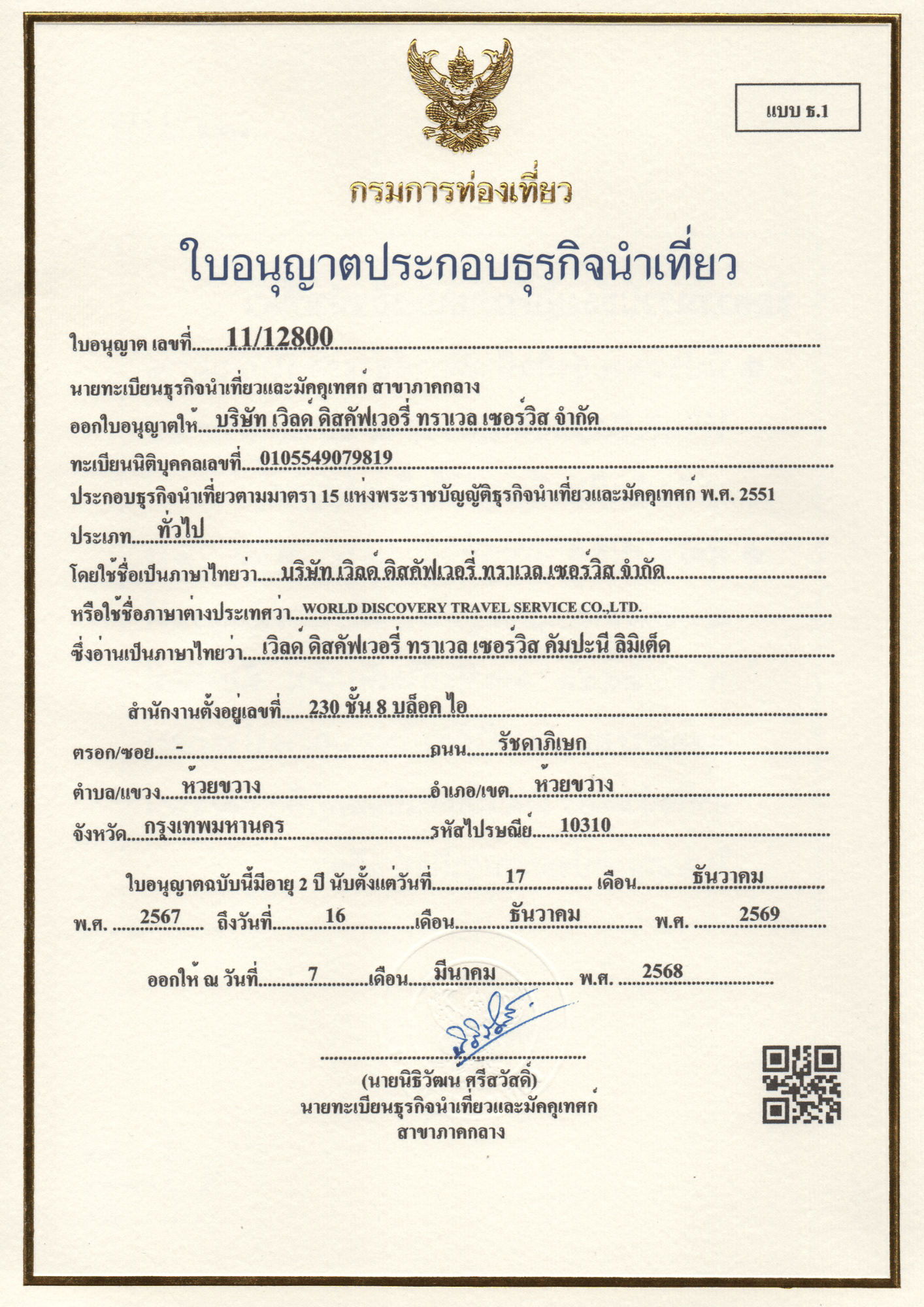 ทุนจดทะเบียน 5,000,000 ล้านบาท ชำระเต็มมูลค่าทะเบียนพาณิชย์ เลขที่ 0105549079819 ออกโดยกรมพัฒนาธุรกิจการค้า กระทรวงพาณิชย์ทะเบียนภาษีมูลค่าเพิ่ม (ภ.พ.20) เลขที่ 0105549079819 ออกโดยกรมสรรพากรใบอนุญาตประกอบกิจการท่องเที่ยว เลขที่ 11/12800 จากสำนักทะเบียนธุรกิจนำเที่ยวและมัคคุเทศก์ใบอนุญาตจดทะเบียนพาณิชย์อิเล็ก ทรอนิกส์ เลขที่ 0105545027661 ออกโดยกระทรวงพาณิชย์