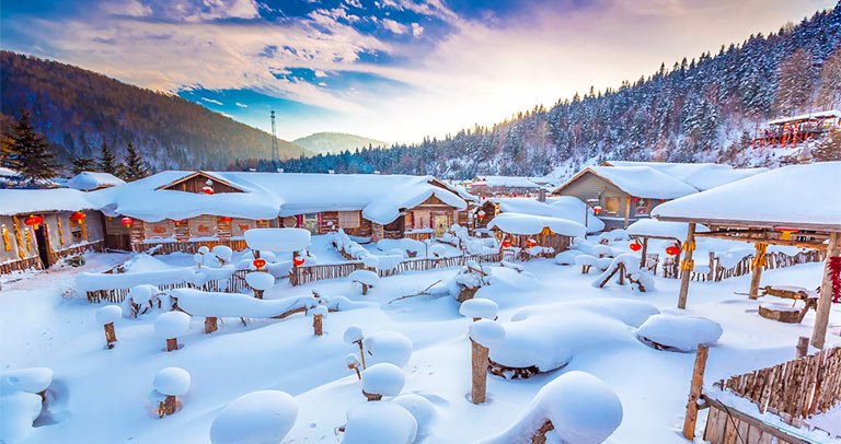 china snow town หรือที่รู้จักกันในชื่อ Shuangfeng Forest Farm ห่างจากฮาร์บินซึ่งเป็นเมืองหลวงของมณฑลเฮยหลงเจียงประมาณ 280 กม. นักท่องเที่ยวหลายคนเลือกที่จะไปไชน่าสโนว์ทาวน์ ที่ครอบคลุมพื้นที่ประมาณ 17,916 เฮกตาร์อยู่ที่ระดับความสูงประมาณ 1,100 กม. เป็นสถานที่ที่ดีที่สุดในการสัมผัสเสน่ห์ของหิมะในโลกที่เหมือนสวรรค์ ในช่วงที่หิมะตกจะอยู่ระหว่างเดือน ต.ค – พ.ค มีหิมะปกคลุมหนากว่า 1 เมตร บนหลังคาบ้าน ทำให้มีลักษณะคล้ายๆ เห็ดจึงถูกเรียกว่า “บ้านเห็ดหิมะ” china snow town หมู่บ้านเล็ก ๆที่เหมือนอยู่ในดินแดนนิยาย นอกจากหิมะที่นี้จะหนาที่สุดแล้วยังสะอาดที่สุดในจีนอีกด้วย
