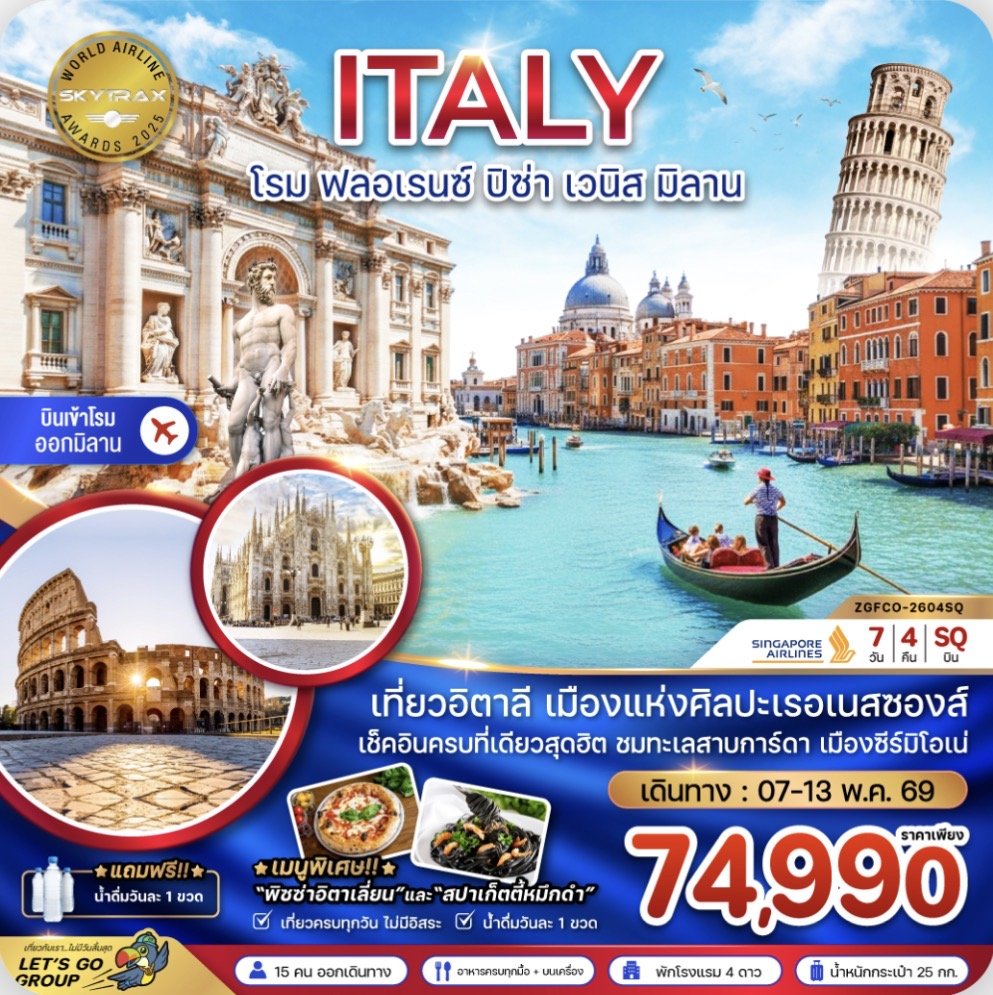 อิตาลี (โรม ฟรอเรนซ์ ปิซ่า เวนิส มิลาน)