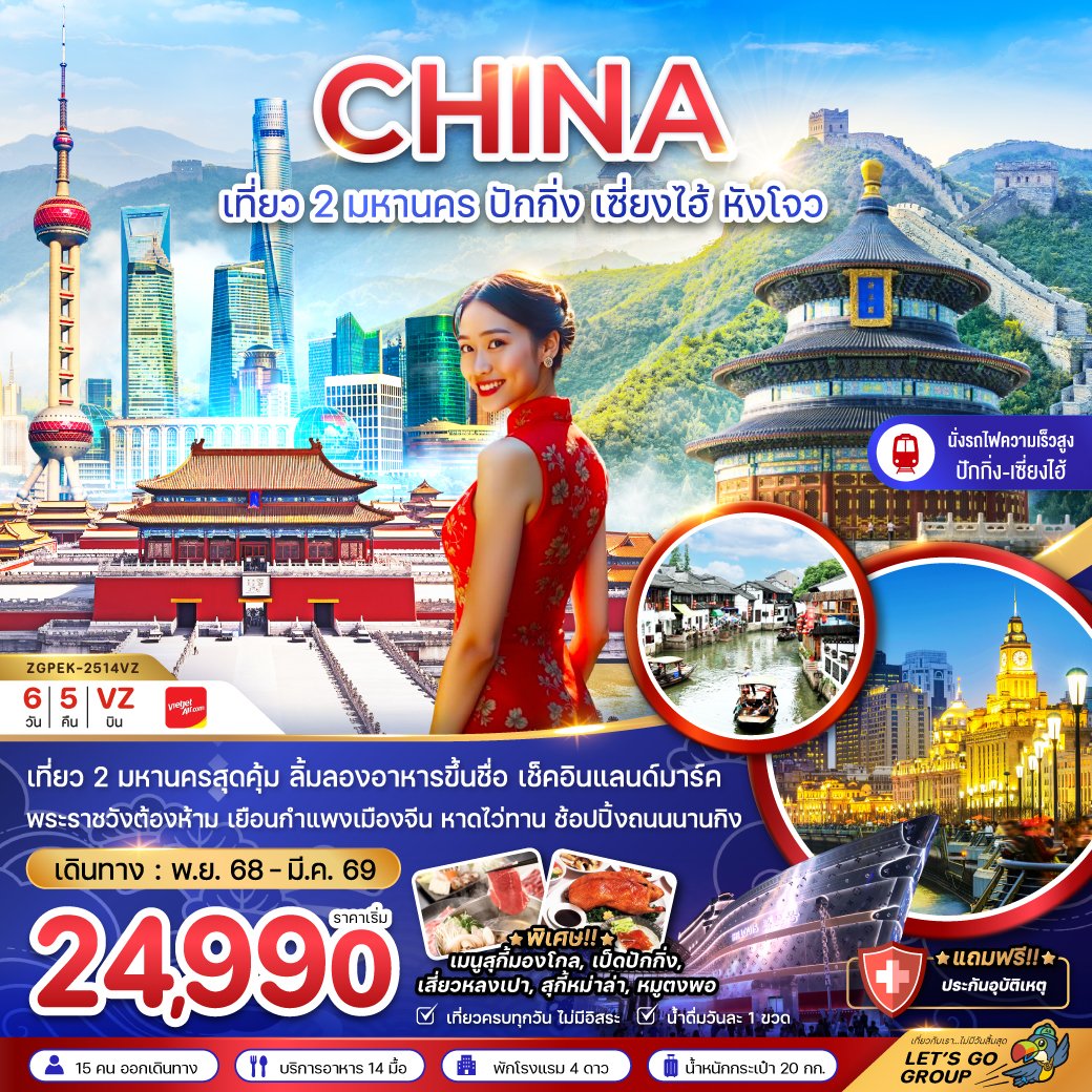 จีน เที่ยว 2 มหานคร ปักกิ่ง เซี่ยงไฮ้ หังโจว (นั่งรถไฟความเร็วสูง เข้าปักกิ่ง-ออกหังโจว)