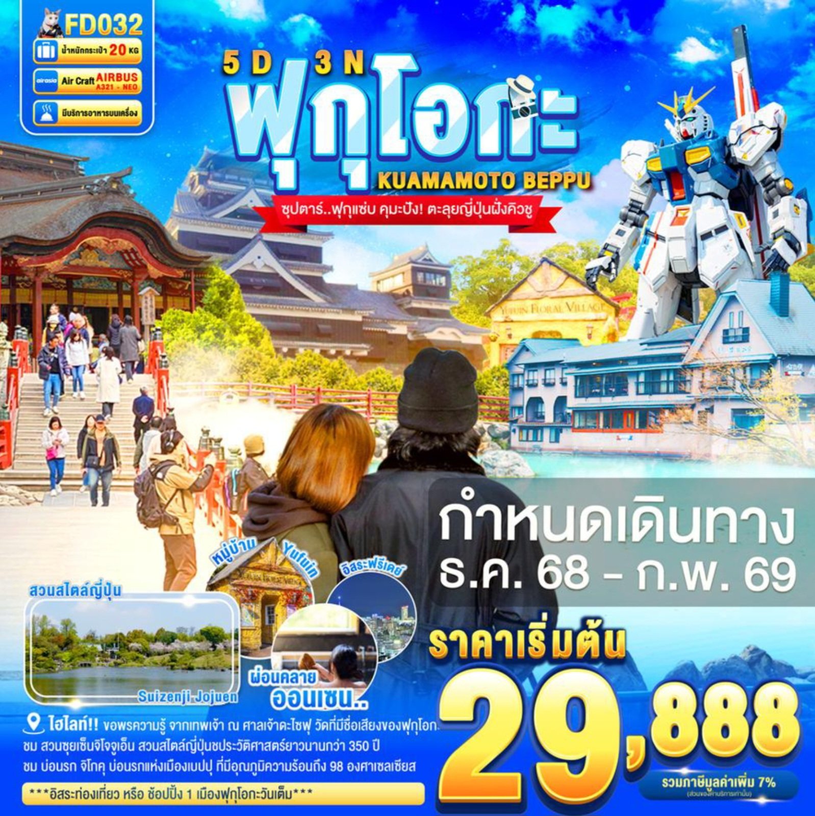 FD032FUKUOKA KUMAMOTO BEPPU FREEDAY 5D 3N BY FD --- DEC'68 -- ซุปตาร์..ฟุกุแซ่บ คุมะปัง! ตะลุยญี่ปุ่นฝั่งคิวชู
