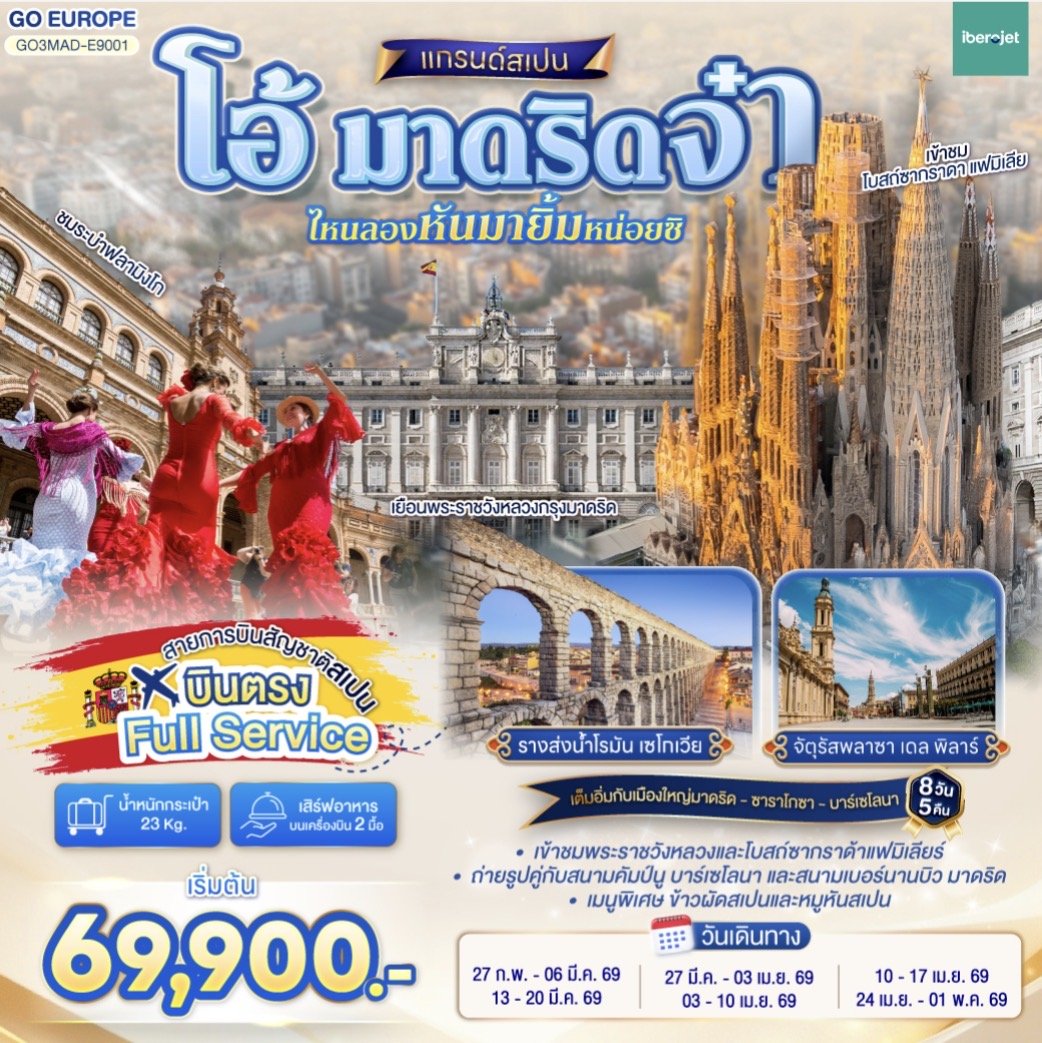 สายการบินไอเบอร์โร่เจ็ท (E9) เดินทางช่วงเดือน มีนาคม-เมษายน 2569