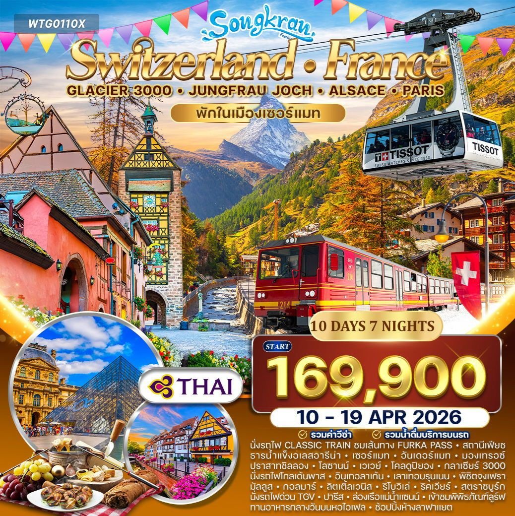 ทัวร์สวิตเซอร์แลนด์ - ฝรั่งเศส(อัลซาส) Glacier 3000 – จุงเฟรา 10 วัน (TG) 10 - 19 APRIL 26